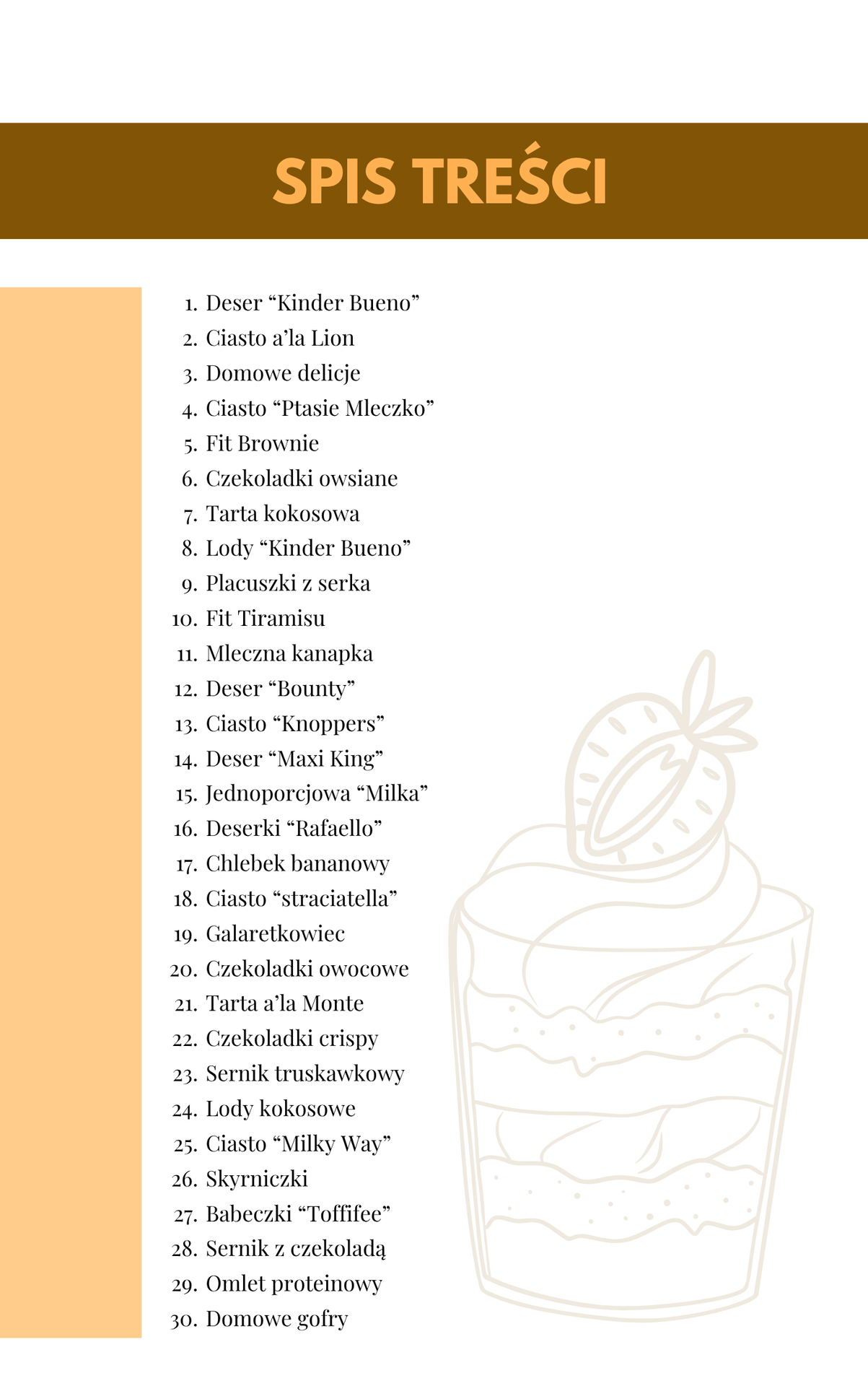 Wyobraź sobie, że masz ochotę na coś słodkiego i zamiast sięgać po przypadkowe ciastko z cukierni, otwierasz e-book i wybierasz zdrowy deser. Każdy przepis jest prosty, szybki i z dokładnie policzonymi kaloriami oraz makro.